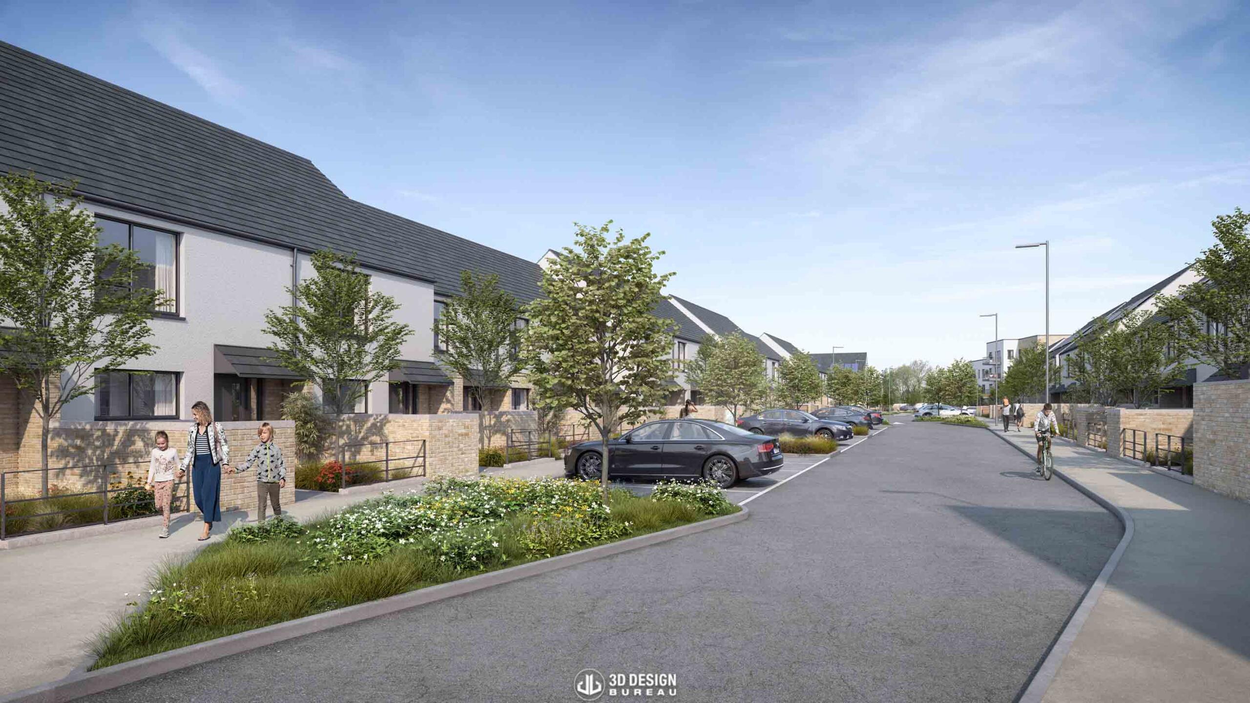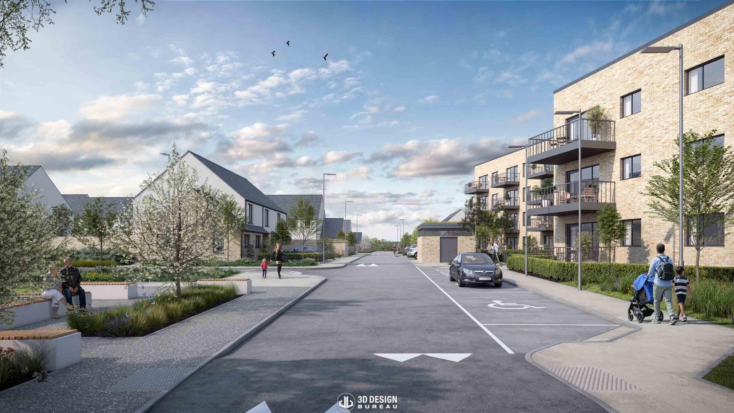 The houses, ranging from two- to four-bedroom units, will be part one-storey, part two-storey, and two-storey in height, while the apartments will be contained within a block varying from one to four storeys. The scheme will also provide landscaped open spaces, communal amenity areas, private gardens, balconies, and terraces designed to promote community living and outdoor activity.