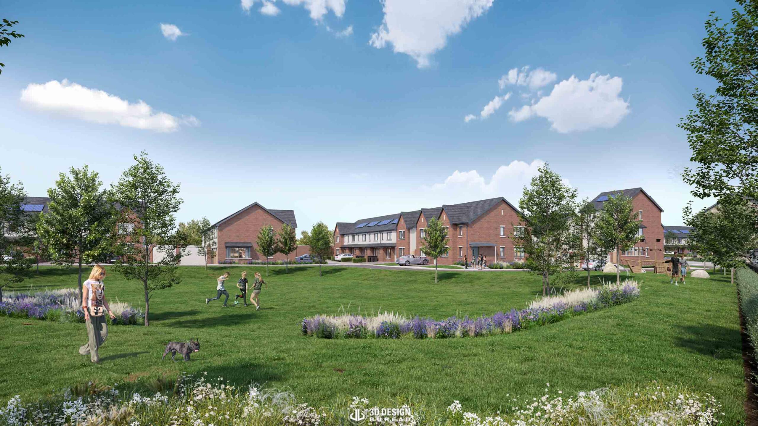 The development will feature a diverse mix of house types, including maisonettes, duplexes, bungalows, and two- to four-bedroom houses. A total of +140 car parking spaces and +60 bicycle spaces are also included within the approved plans.